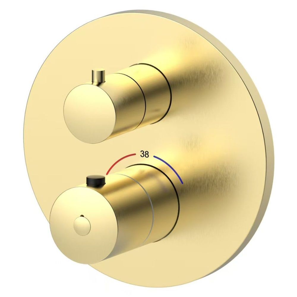 - / Bateria Prysznicowo-Wannowa Termostatyczna Podtynkowa Z Boxem 3-Wyjściowym Ori Złoty Szczotkowany PVD 08043GN-P Emporia