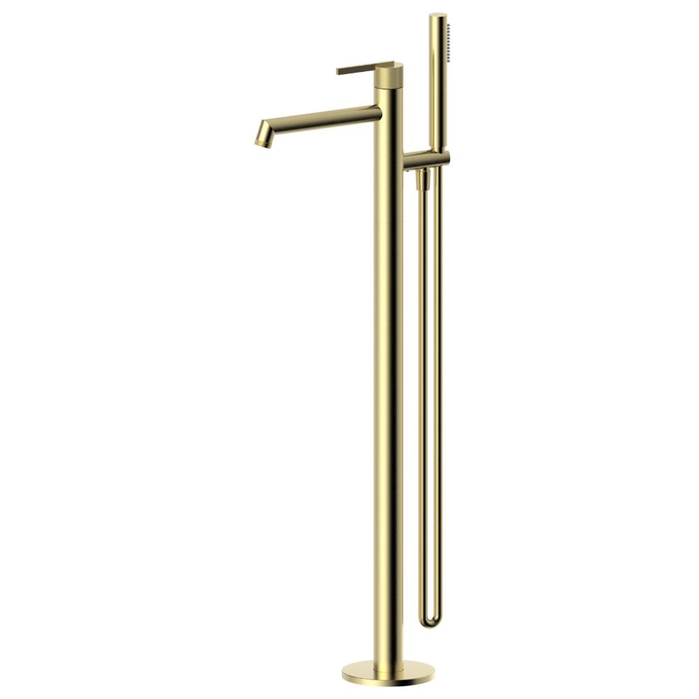 - / Bateria Wannowa Wolnostojąca Z Elementem Podłogowym I Zestawem Natryskowym Ori Złoty Szczotkowany 08031GN Emporia