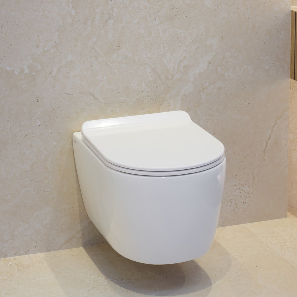 Miska WC 54 Cm Wisząca Bezrantowa Z Systemem Spłukiwania Spin 360 I Deską Wolnoopadającą Doto Biały Połysk CEEX.1403.545.WH Excellent