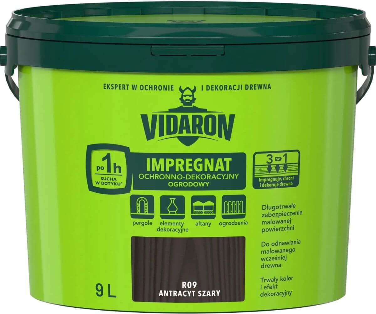 - / Impregnat Ochronno Dekoracyjny Ogrodowy Antracyt Szary R09 9 L Vidaron