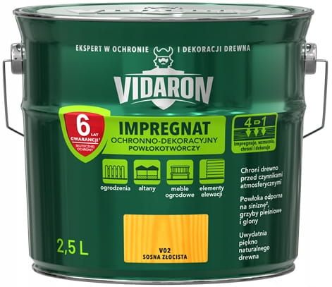 - / Impregnat Ochronno-Dekoracyjny Powłokotwórczy V02 Sosna Złocista 2,5L Vidaron