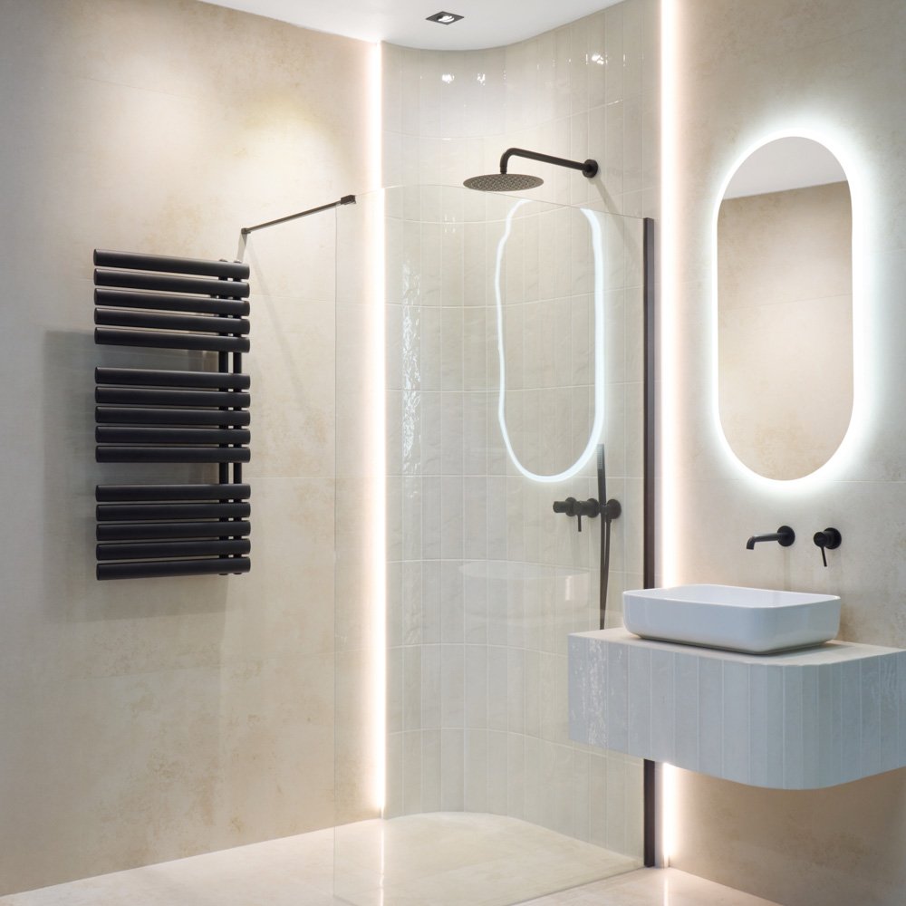 Ścianka Prysznicowa Gięta Walk-In 93x200 cm Vidoq Czarny Mat KAEX.1507.930.LP.BL Excellent