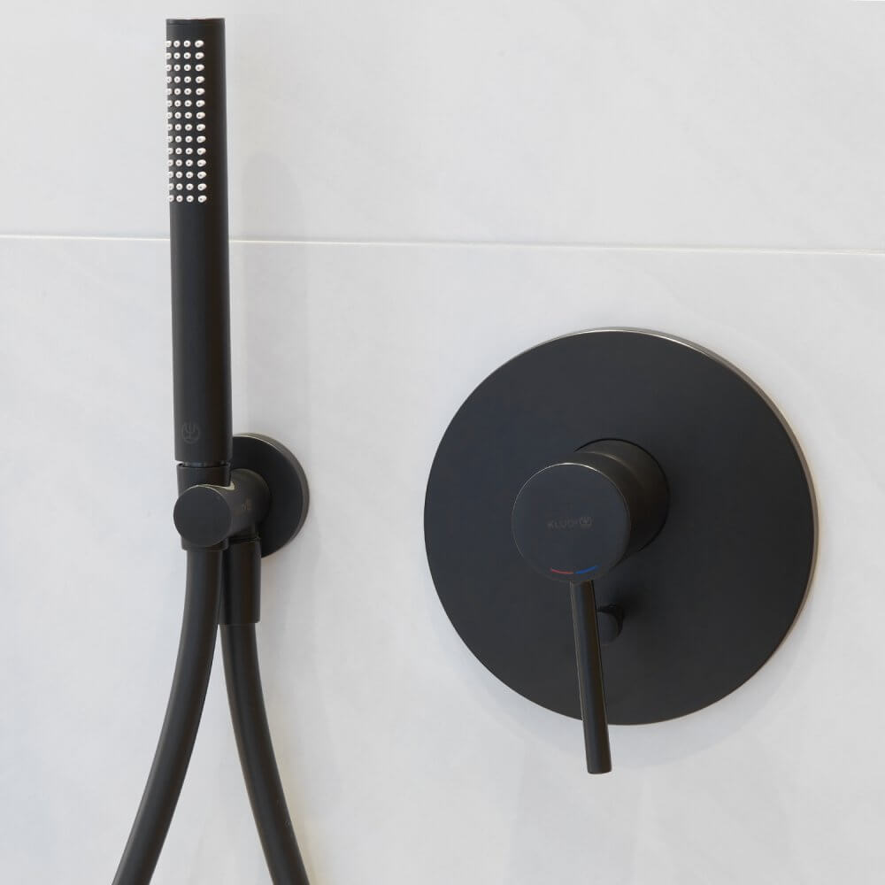Kontrastowe dodatki w jasnej łazience