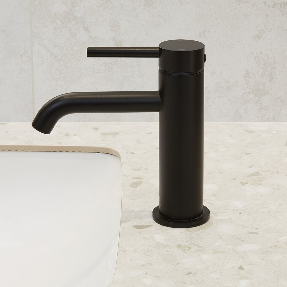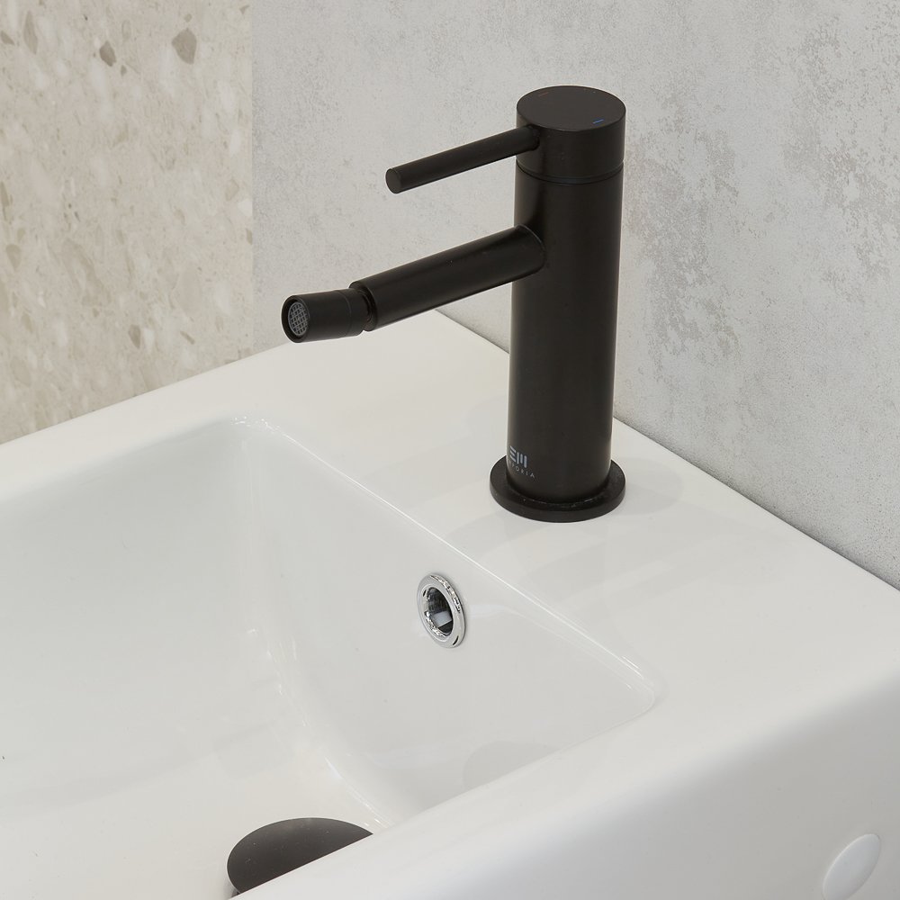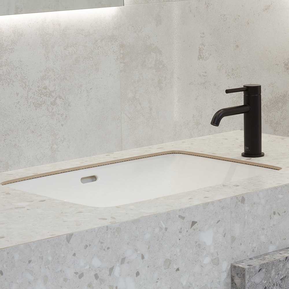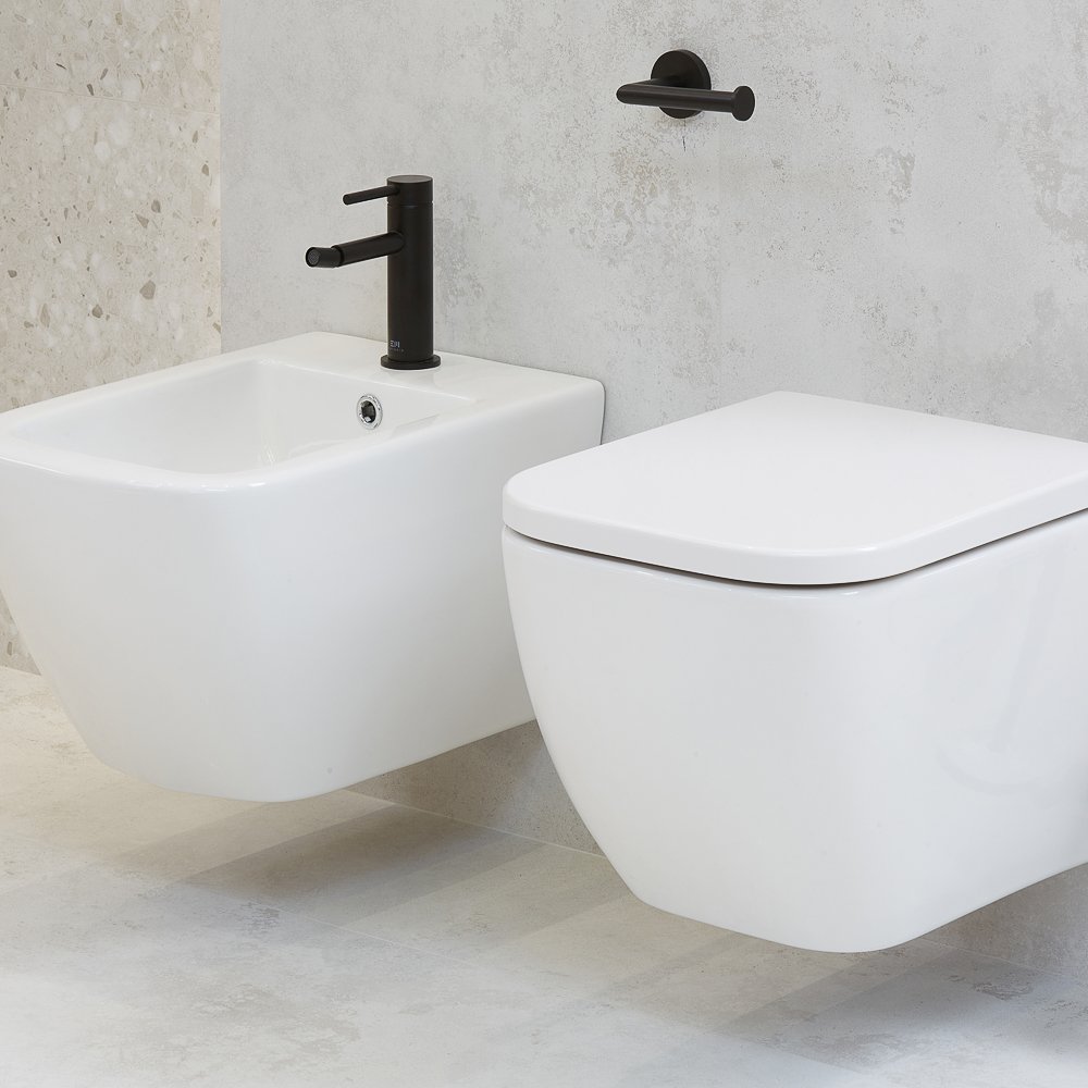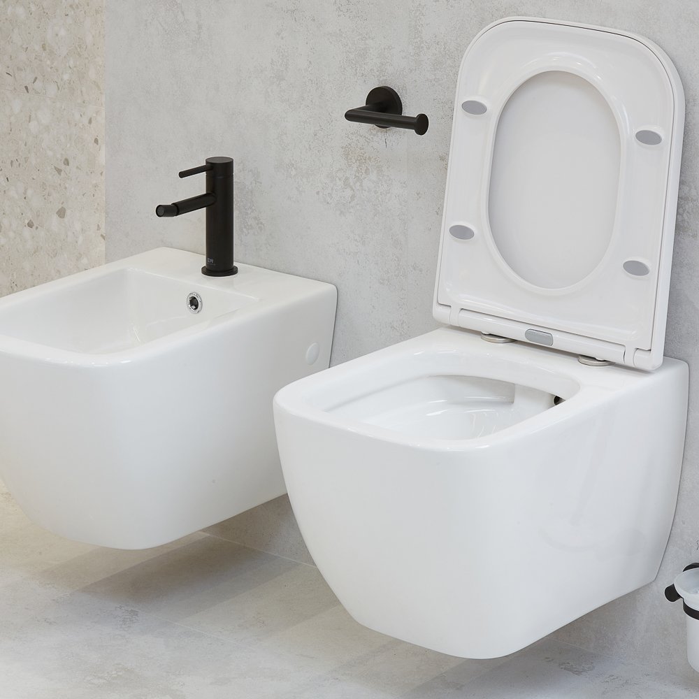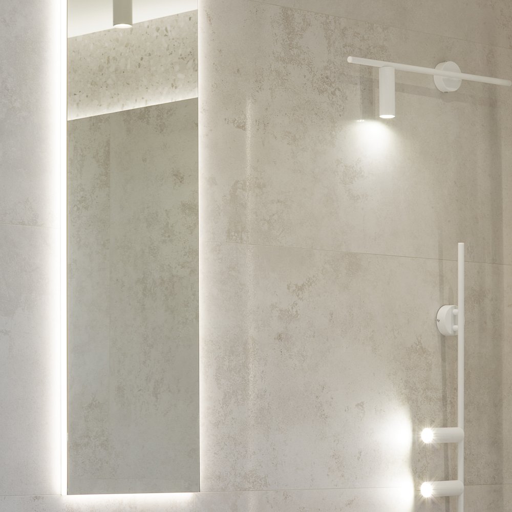 W tej łazience króluje minimalistyczne wyposażenie, które doskonale koresponduje z eleganckimi płytkami Torano White Lappato. Umywalka Pro S z subtelny blat w neutralnych barwach stanowią idealne uzupełnienie jasnej kolorystyki płytek. W tej aranżacji dominują proste, geometryczne formy, które w połączeniu z wysokiej jakości materiałami tworzą funkcjonalną przestrzeń o spójnym, nowoczesnym charakterze. Czarne akcenty, takie jak bateria umywalkowa Fly, uchwyty i bateria bidetowa Fly, przełamują delikatność jasnych powierzchni, nadając wnętrzu wyrazistości. Dzięki temu wnętrze zyskuje nowoczesny, nieco industrialny sznyt, który wprowadza odrobinę dynamiki, pozostając jednocześnie eleganckie. Ważną rolę odgrywają także oświetlenie LED oraz subtelne podświetlenia, które dodają przestrzeni głębi i podkreślają piękno wykończenia.