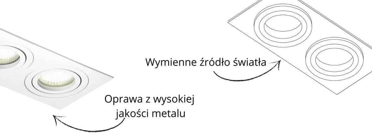 Volar 2 White to podtynkowy spot z dwoma źródłami światła, który przypadnie do gustu wszystkim miłośnikom minimalizmu. Model ten pozwala zachować pełną kontrolę podczas planowania przestrzeni w aranżacji. Jego prosta, a zarazem bardzo ciekawa budowa zachwyca uniwersalnością i szerokim spektrum możliwości jego zastosowania. Podwójne, podtynkowe oczko zostało wykonane z lekko strukturalnego metalu pokrytego odporną powłoką w kolorze białym. Prostokątna ramka została uzupełniona szklanymi osłonkami, które pięknie rozpraszają światło. Możliwość niemal całkowitego zabudowania lamp z kolekcji Volar 2 sprawia, że stają się one niewidoczne na powierzchni ścian i sufitów, emanując czystym, niezakłóconym blaskiem. Spoty dla większego komfortu ich użytkowników nie zostały wyposażone w zintegrowane źródło światła. Dzięki temu można dostosować jego natężenie oraz temperaturę barwową do potrzeb i preferencji. Moduł ten ma dwa regulowane pola przeznaczone do montażu żarówek LED z gwintem GU10 o maksymalnej mocy 50W każda.