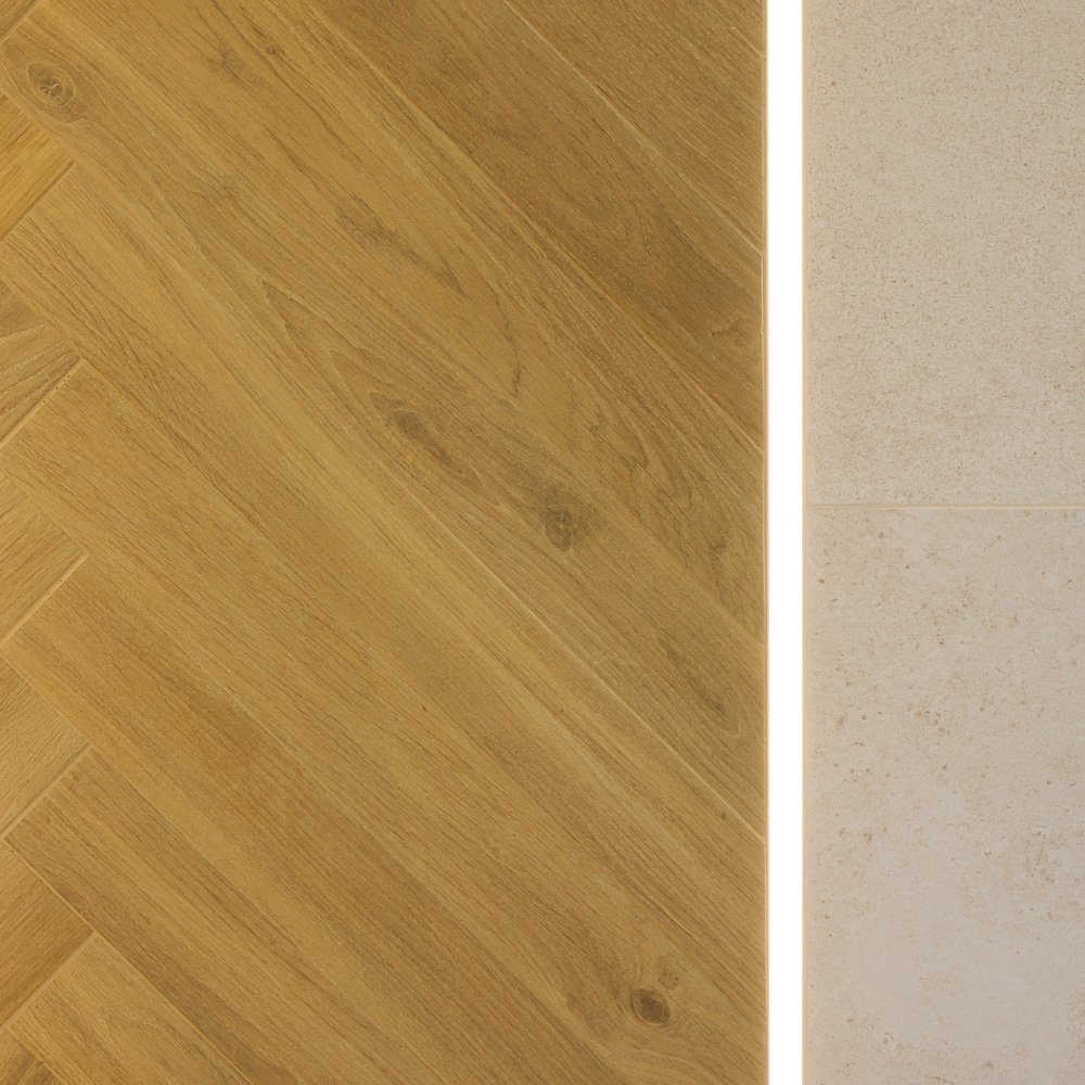Łazienka w ciepłych beżach z płytkami 4ever Havana i drewnianą jodełką