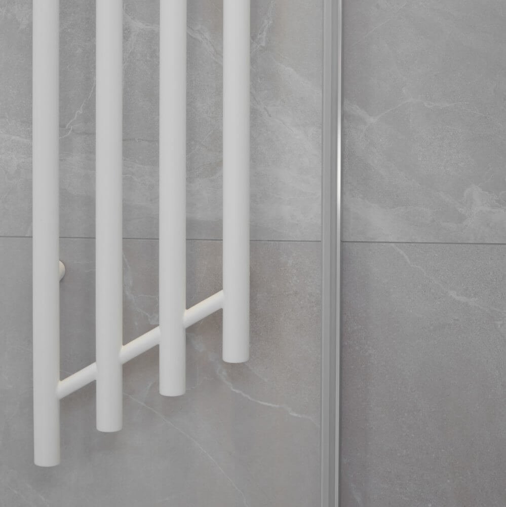 Aby rozświetlić pomieszczenie, w małej, klasycznej łazience pojawiła się biała ceramika, umywalka nablatowa Forli marki Emporia o bardzo nowoczesnych kształtach i biały grzejnik łazienkowy Fuego od Radeco.
