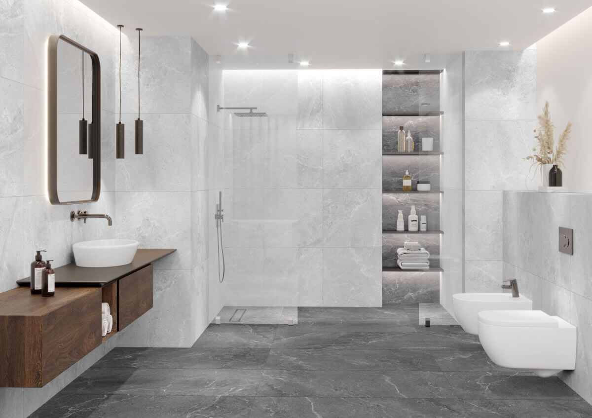 Kamień od zawsze świetnie sprawdza się w różnorodnych aranżacjach wnętrz i wygląda imponująco. Jednak ten surowiec bywa problematyczny z takich powodów, że jest sam w sobie ciężki i ponadto wymaga specjalnej inspiracji. Ceramica Limone to producent, który ma dla Ciebie świetne rozwiązanie, będące idealnym pójściem na kompromis. Płytki Estello Grey ET12 Mat o wymiarach 119,7 cm x 59,7 cm wyglądają na kamień i doskonale go imitują, a poza tym są niezwykle funkcjonalne.