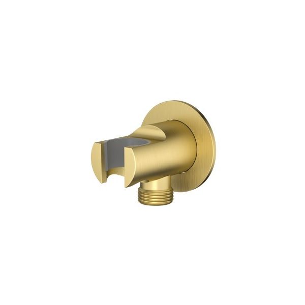 Opinie o Przyłącze Kątowe Okrągłe Z Uchwytem Na Słuchawkę Prysznicową Fly Złoty Szczotkowany 04082GN Emporia