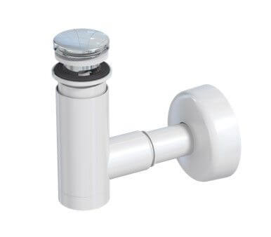 Syfon umywalkowy 32/40 mm, butelkowy, gardziel mosiężna, czyszczony z góry, zamknięcie klik-klak mosiądz chromowany, rura odpływowa i rozeta.