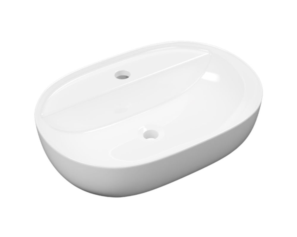 Umywalka Nablatowa 61x41 cm Owalna Z Otworem Na Baterię Jima Biały Połysk CEAC.2002.615.WH Excellent