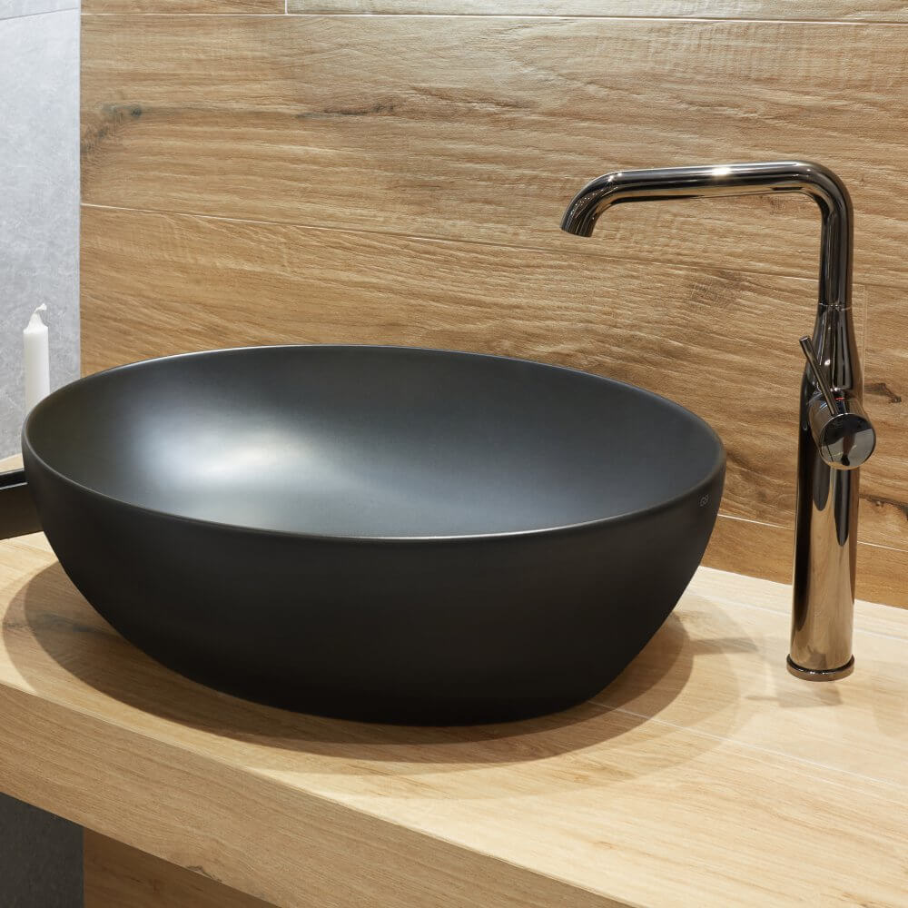 Umywalka Pura GSI jest przeznaczona do montażu nablatowego. Nie ma otworu przelewowego ani tego, przeznaczonego na baterię. Dzięki temu prezentuje się harmonijnie i gładko – niezależnie od rodzaju baterii umywalkowej, którą do niej wybierzesz.