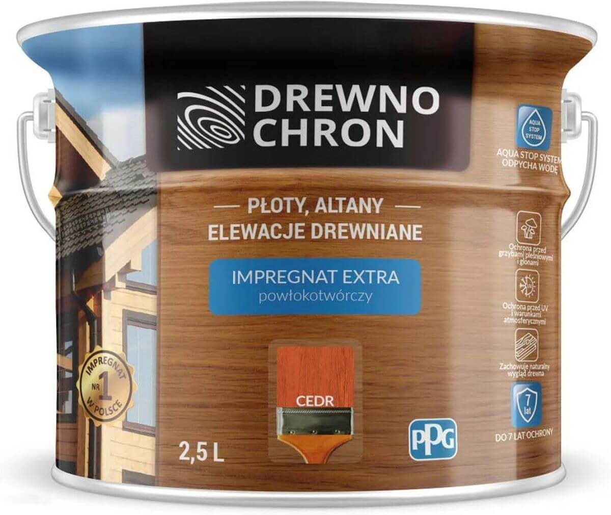 - / Zestaw Impregnat Extra Powłokotwórczy Cedr 2,5L Drewnochron + Pędzel Włoski 70 mm GRATIS