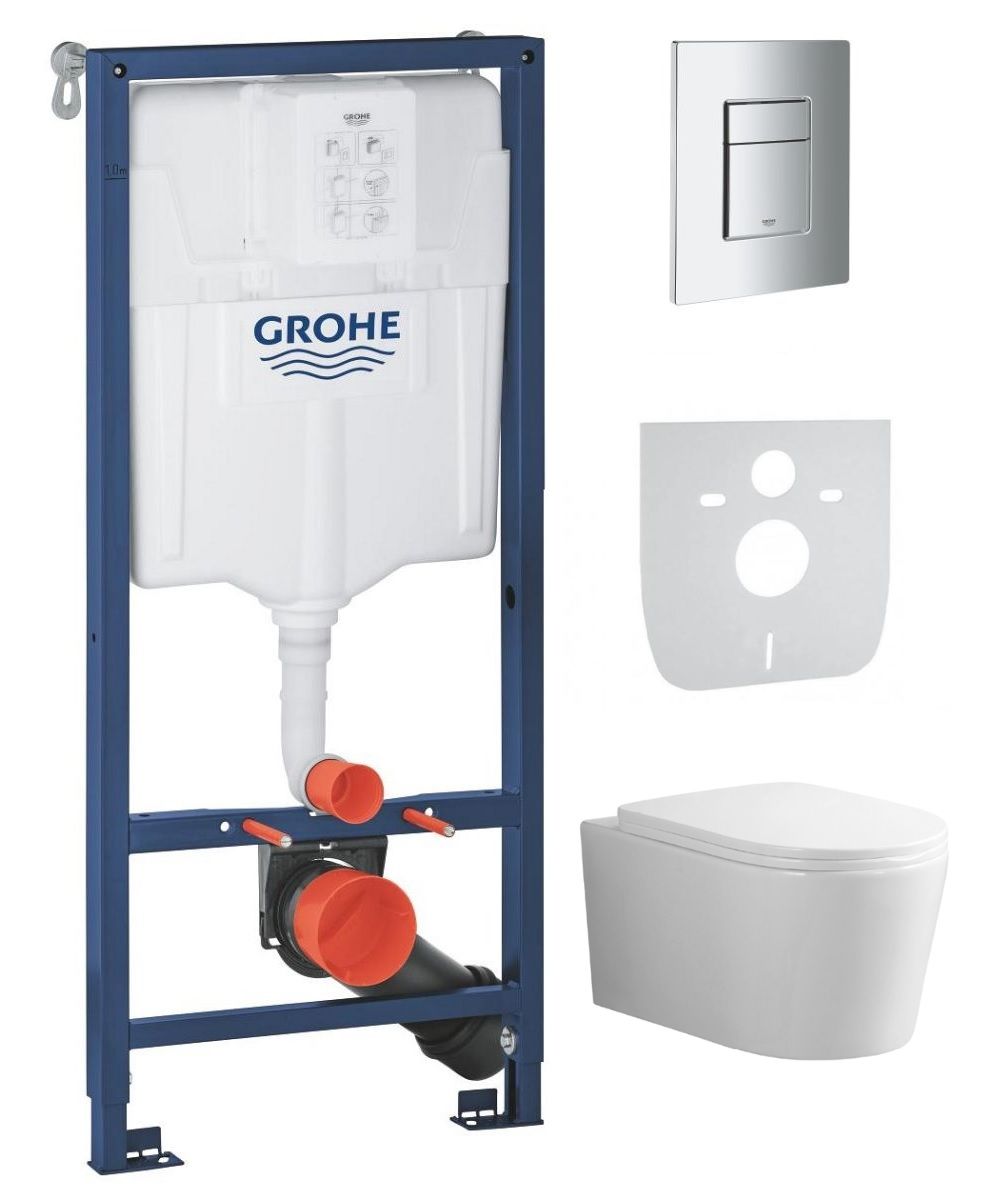 - / Zestaw Podtynkowy 4w1 Stelaż Rapid SL Ze Wspornikami Grohe + Przycisk Skate + Mata + Miska WC z Deską
