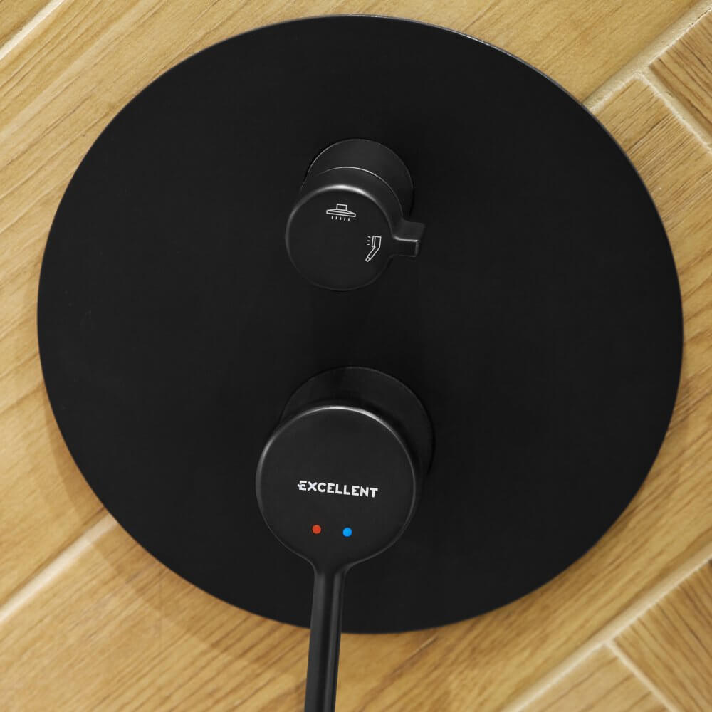 Zestawy prysznicowe podtynkowe to rozwiązanie, które coraz częściej gości w łazienkach. Zajmują one niewiele miejsca na ścianie, całe moduły kryjąc w ścianach. Jeżeli do swojego domu poszukujesz zestawu, który stanie się zwieńczeniem systemu wodnego i jesteś miłośnikiem nowoczesnego designu, Excellent zestaw prysznicowy podtynkowy spełni Twoje wymagania. Funkcjonalny komplet składa się z elementu zewnętrznego baterii prysznicowej zamkniętego w okrągłej rozecie, smukłej słuchawki oraz deszczownicy o średnicy 200 mm. Całość pokryta została matową powłoką w kolorze czarnym, która nadała zestawowi industrialnego wydźwięku. Wykorzystaliśmy go w naszej aranżacji łazienki z czarną armaturą, gdzie miejsce znalazły wszystkie gorące trendy wnętrzarskie. Świetny wygląd zestawu Pi Excellent jest zapowiedzią rozwiązań w nim zawartych. W całej kolekcji zastosowane zostały najnowsze osiągnięcia marki: głowice ceramiczne Kerox oraz oszczędnościowe perlatory Neoperl Slim. To one przedłużają trwałość produktu i pozwolą Ci cieszyć się nim na dłużej.