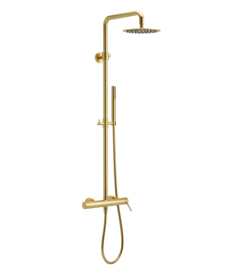 Zestaw Prysznicowy Ścienny Z Deszczownicą 25 cm PI Złoty Szczotkowany AREX.1281GB Excellent